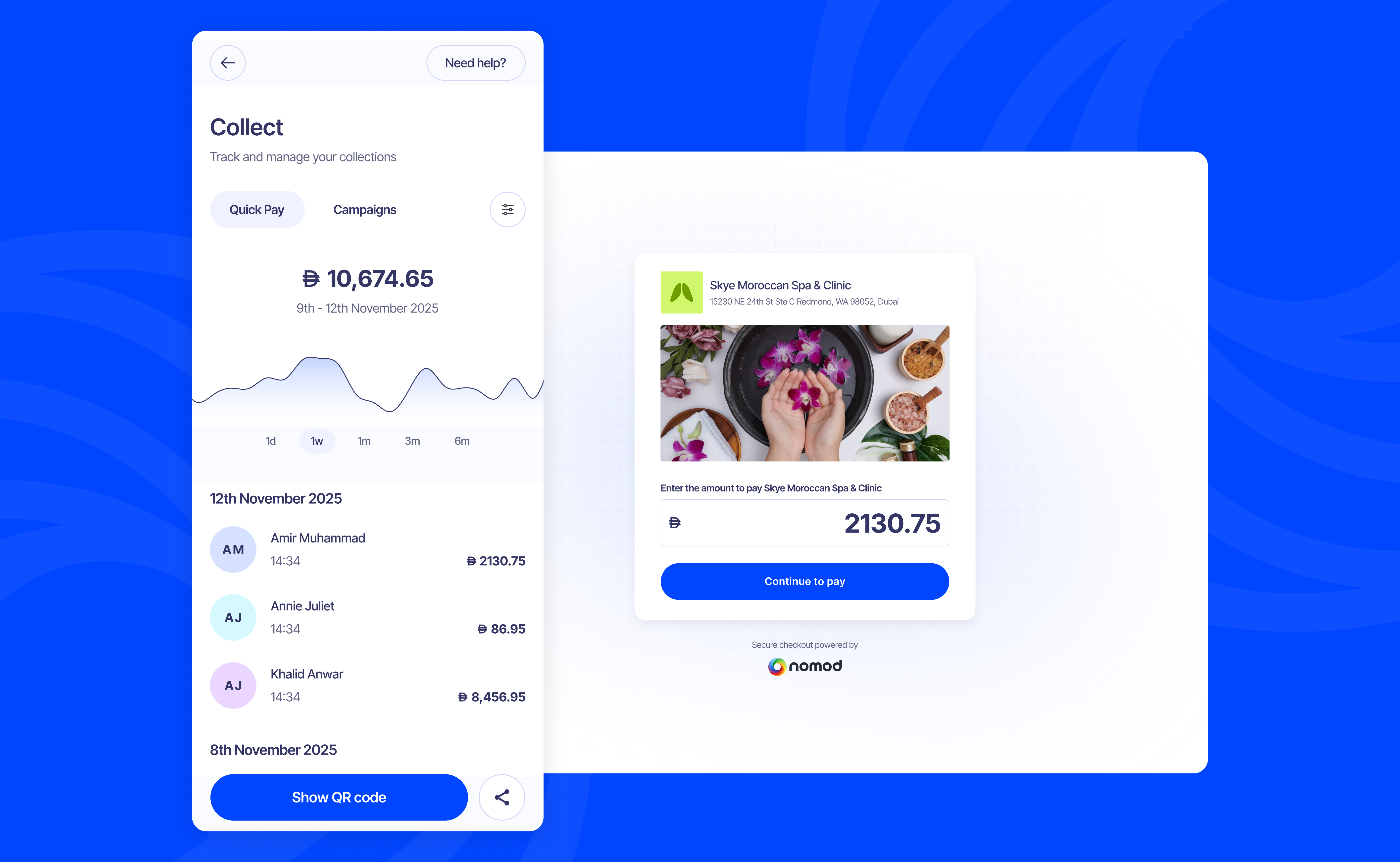 Quick Pay lets your customers pay you fast with a QR code or link. It is perfect for stores dealing with multiple customers at the counter, restaurants taking payments at the table and for customers paying remotely.
